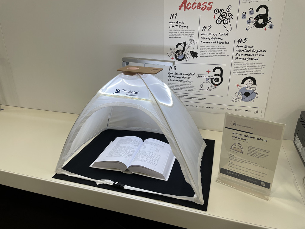 - Offenes Buch oder Dokument in das Scanzelt legen und los!